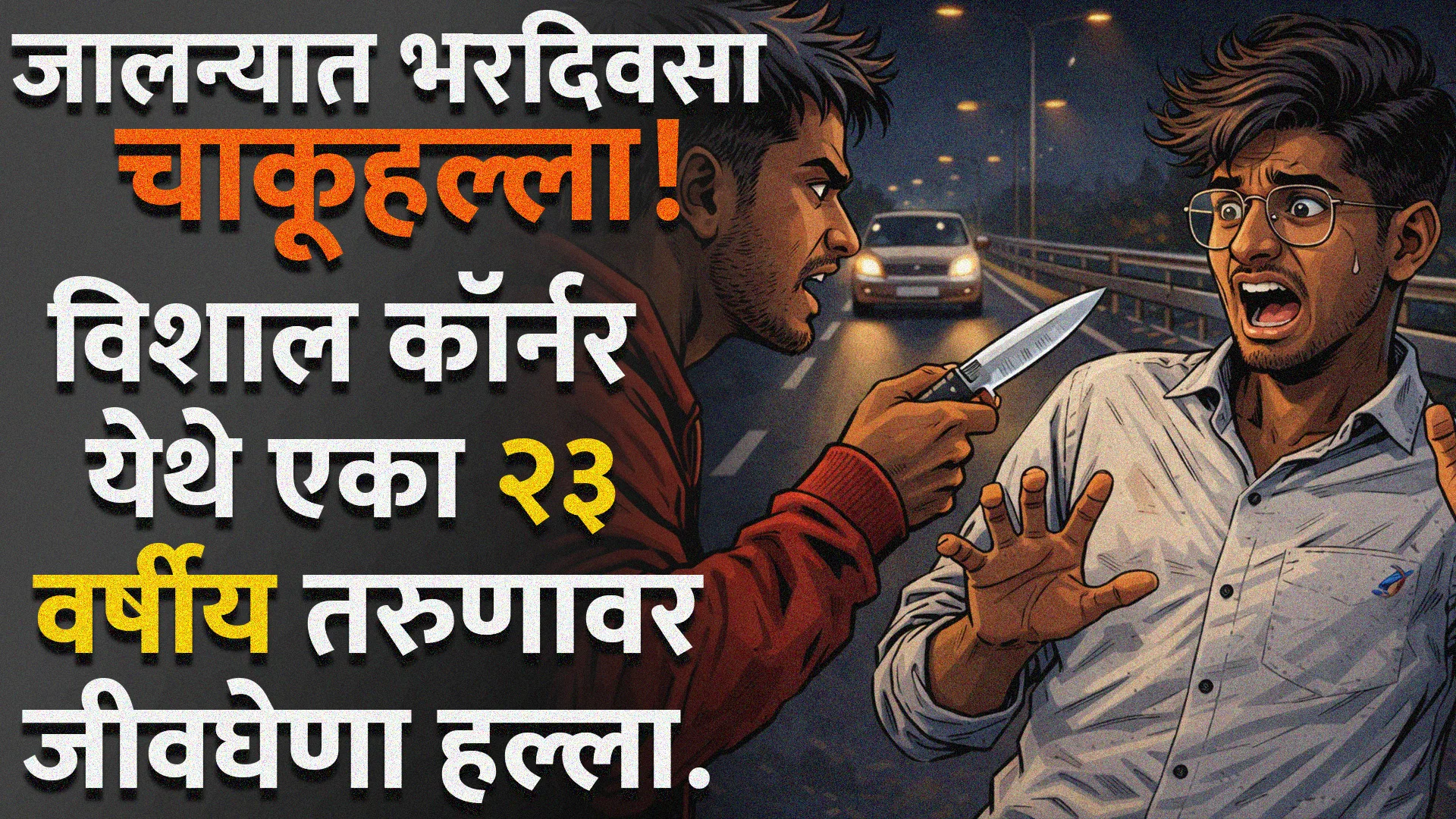 Jalna Knife Attack या घटनेमुळे जालना शहरात एकच खळबळ उडाली आहे. जालना–मुख्य महामार्गावरील विशाल कॉर्नर परिसरात आज दुपारी सुमारे तीन वाजण्याच्या सुमारास 23 वर्षीय तरुणावर अज्ञात दोन हल्लेखोरांनी दिवसाढवळ्या चाकूने सपासप वार करून गंभीर जखमी केल्याची धक्कादायक घटना घडली आहे.